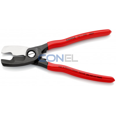 - Rozdelením úkonov rezania na počiatočný rez (izolačný plášť v prednej reznej oblasti) a záverečný rez (vodič v zadnej reznej oblasti) môžete rezať káble až Ø 20 mm jednou rukou